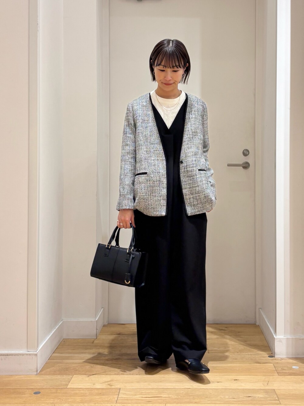 yokoo (DOORS ららぽーと柏の葉)のスーツジャケット「ツィードVネックロングジャケット」を使ったコーディネート