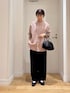 かぐれのリネンシャツを主役にコーディネート! 生地は程よくハリがあるコットンリネン素材。 淡いピンクがとにかく可愛いです♪ 派手すぎない柔らかい色味なので、色物が苦手な方にもオススメですよ◎ シンプルなデザインですが胸元のポケットがさりげないポイントに♪ ぜひ、お試しください。