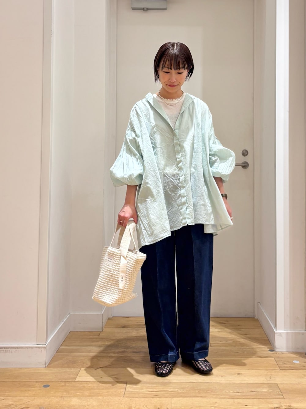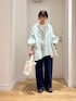 DOORS定番のコットンボイルギャザーブラウス! 薄手の生地感でさらっとしていて暑くなるこれからの時期にオススメアイテムです◎ お袖のボリューム感がとても可愛いですよ! 派手すぎないミントカラーなので普段あまり色物を着ない方にもオススメです◎ ぜひ、お試しください。