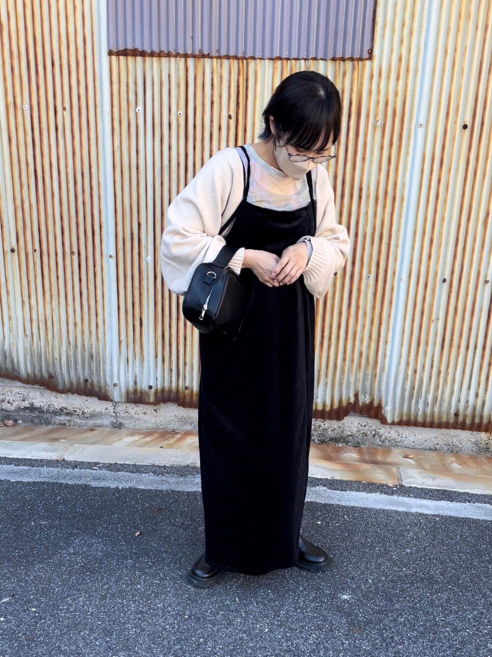 velor one-piece🖤 ベロアワンピ欲しいなぁと思ってたら プチプラで発見🥹🫶🏻 紐アレンジもたくさんできそうな デザインで即決💯 急いで出たからアクセサリー つけ忘れて残念😢