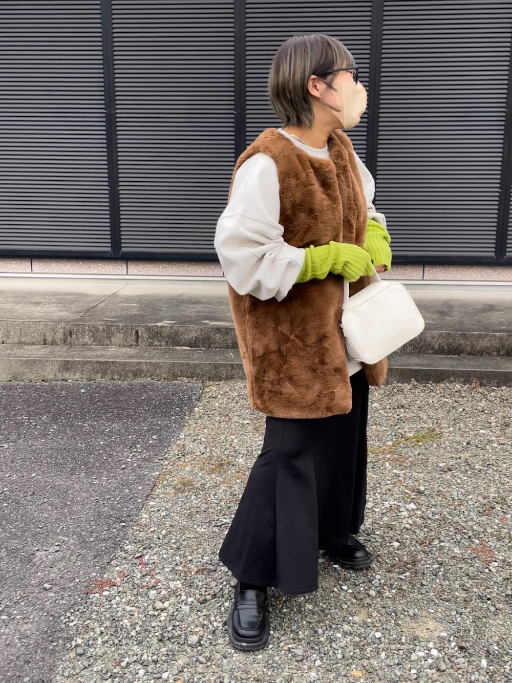 fur vest🧸 もっこもこのファーベスト🙆🏻♀️ discoatやつなんやけど やっぱりペラペラじゃないしあったかい♨️ アクセントにアームウォーマー付けた🤞🏻