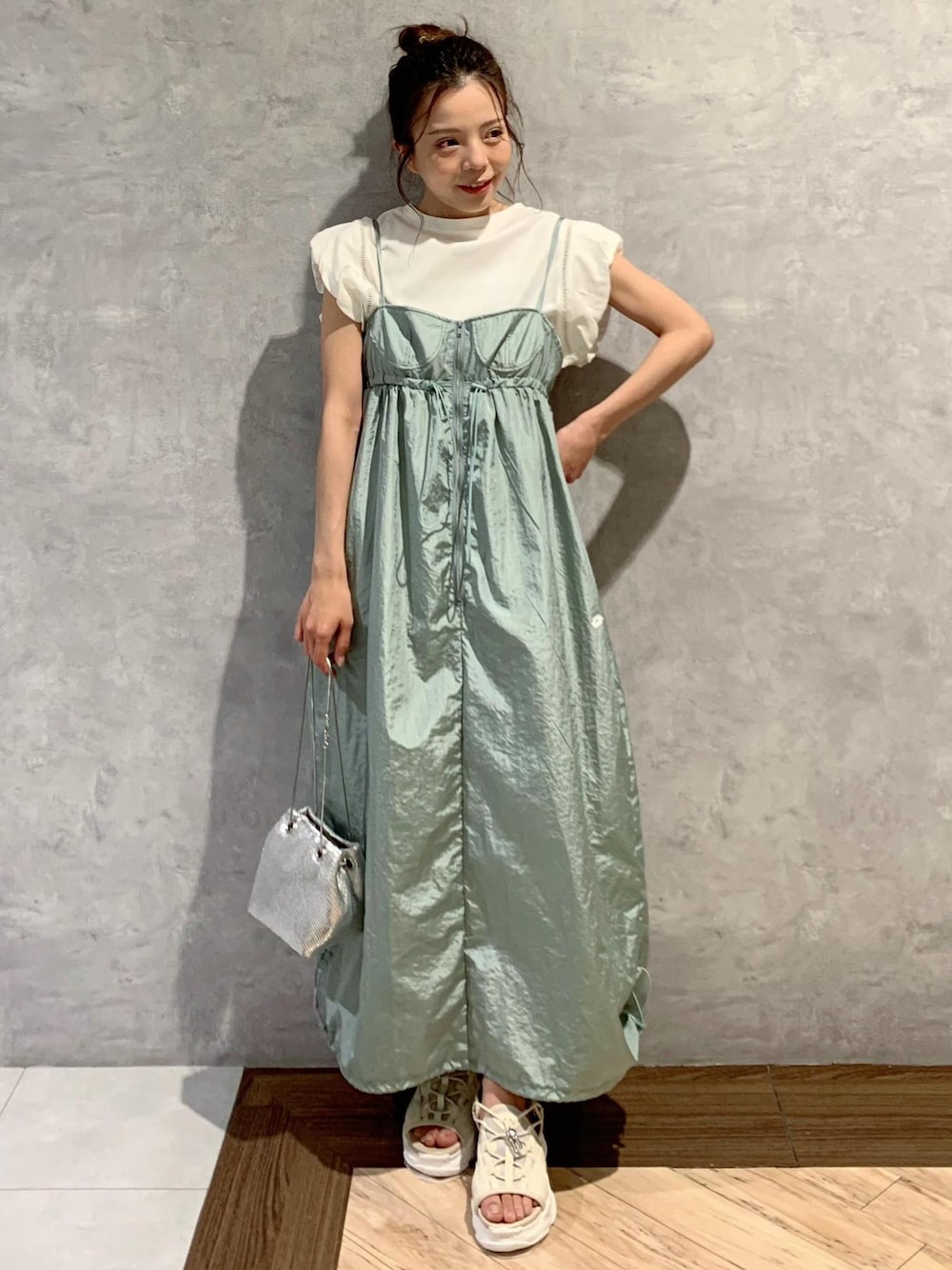 スポーティーなワンピースを フェミニンなコーデにしました! 動き回る日にもデートにもオススメ