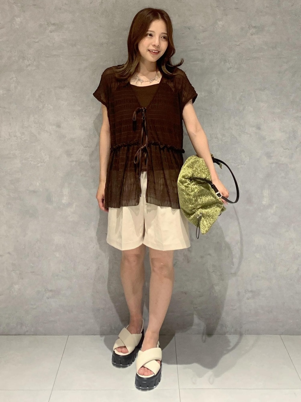 大人のショートパンツが注目されてます 高見えするブラウンのトップスを合わせた ボヘミアンテイストにしました。 ラフなのにどこかラグジュアリーな雰囲気♡