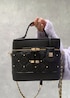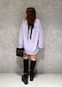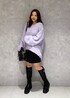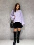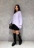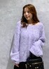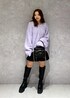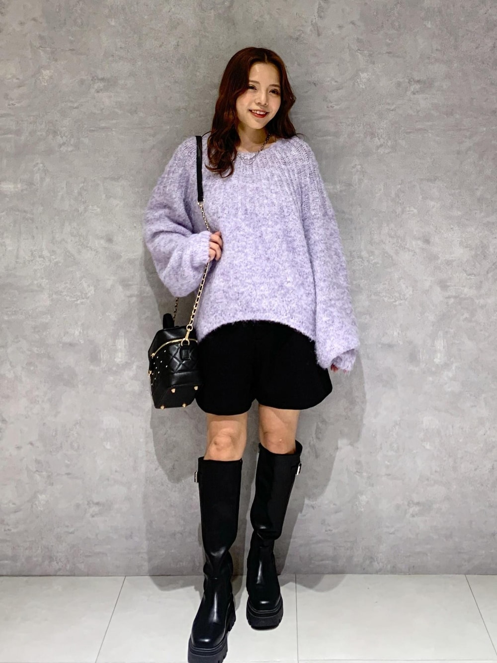 パープル×ブラックの組み合わせは 凛とした女性の強さがでて好き♡ バックに大きなリボンが付いたニットは アウターを脱いだらフェミニン、可愛らしさ もあるコーデにしました!