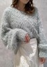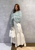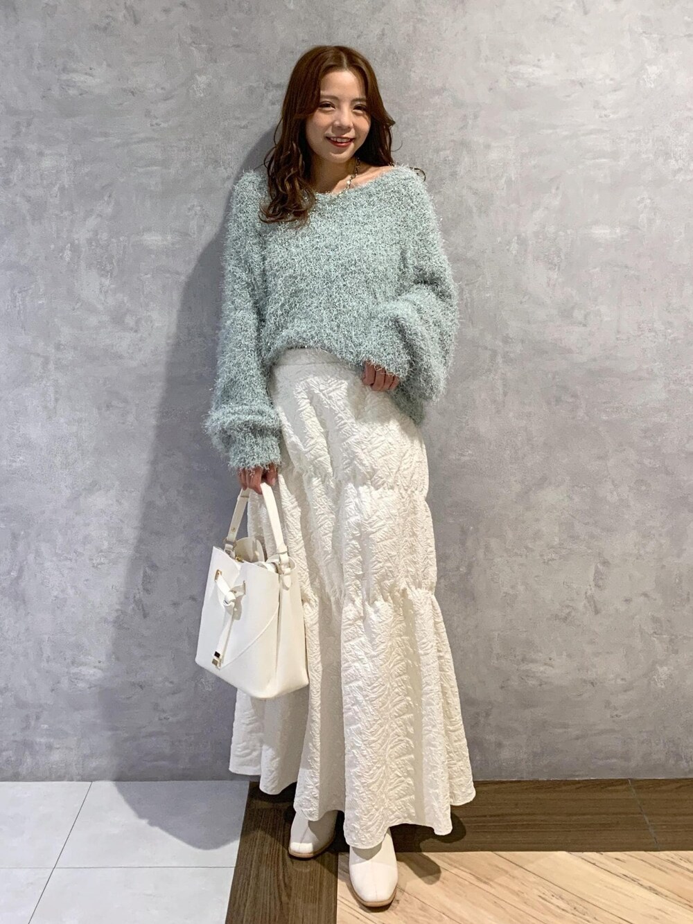 冬に可愛いカラーコーデ! ホワイトトーンの中で水色の ラメニットが映えて雪化粧みたい♡ おでかけで注目の的間違いなし!