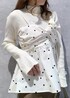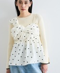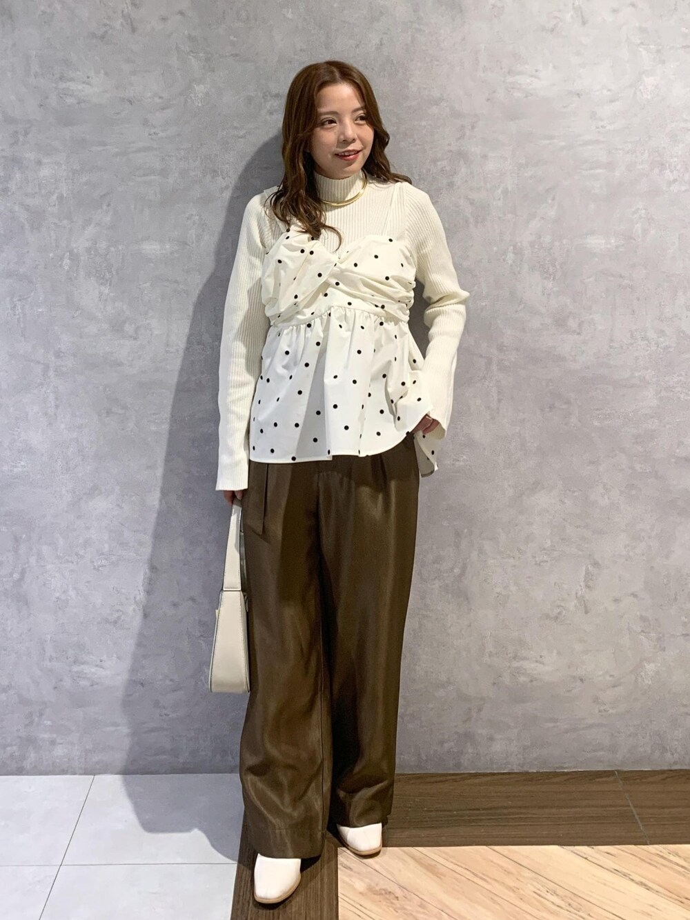 アイボリー×ブラウンで品のある配色に ドット柄のビスチェをプラスすることで 大人っぽいクラシックな雰囲気になりました♡ サテンボトムの艶でシーズンムードを高め ベーシックカラーでも華やかさがでました!