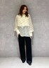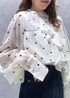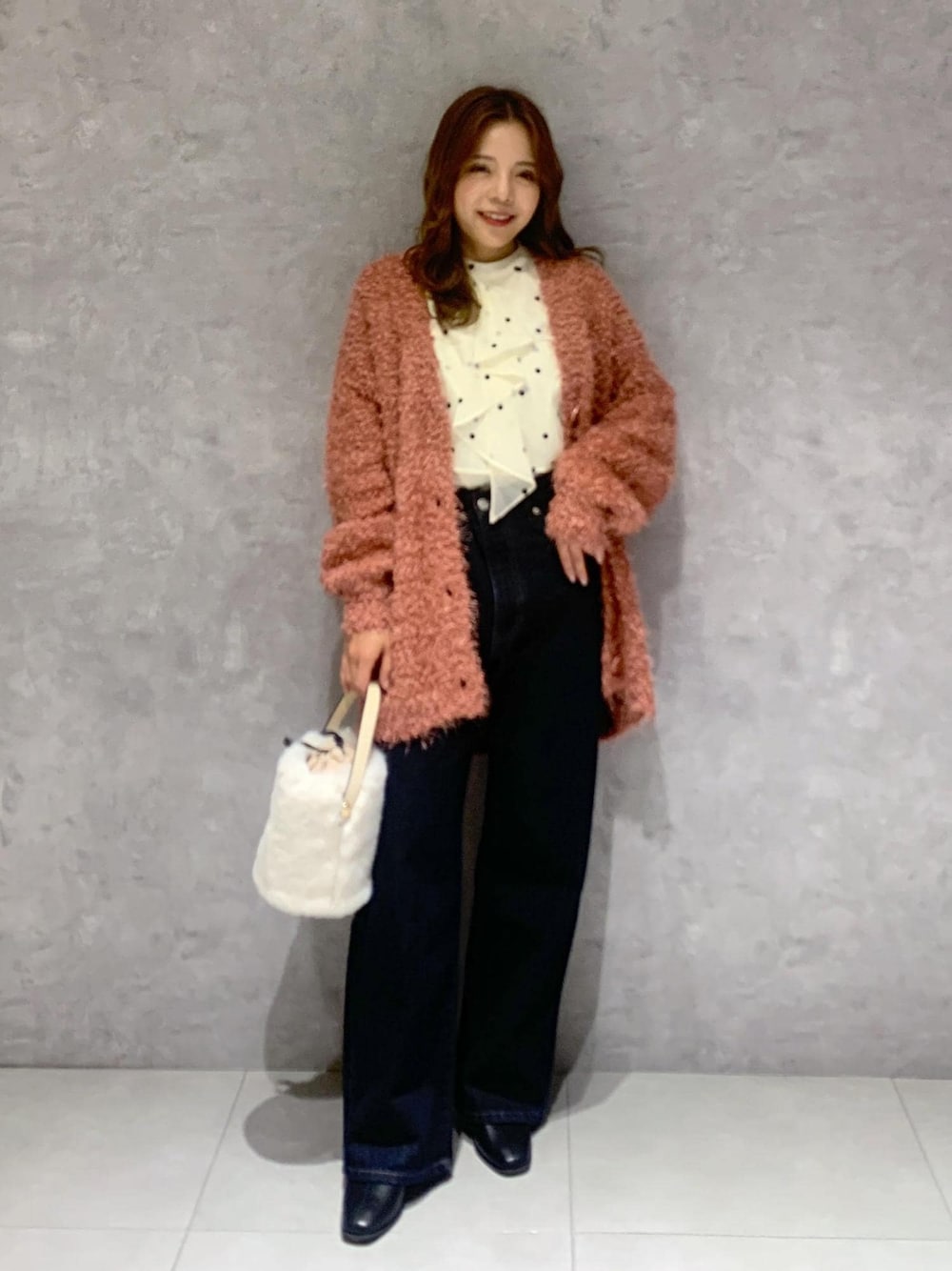 かしこまることはないけど きちんとしなきゃな大人の集まりに! ドットのブラウス可愛い♡ ピンクのもこもこニットであったかくしつつ デニムでもカジュアル過ぎない印象に!