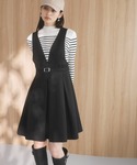 ジャンスカの制服ぽさが どこか知的で可愛らしいさがでます♡ 子供っぽく見えないよう インナーはボーダーで甘さを抑え ジャケットライクなアウターで きりっとさせました!!