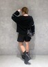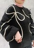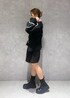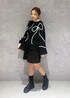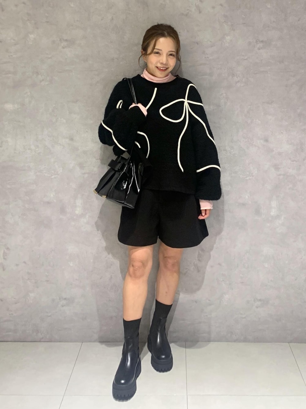 ブラックのワントーンで モードな雰囲気にしつつ ニットには大きなリボン刺繍に バックもリボン!! 実はフェミニンなコーデにしました 甘めが苦手でもバレーコアな トレンドを楽しめます!