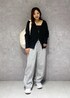 スウェットパンツにラグジュアリー見えする ファー素材のパーカーなら大人映え◎ 全体的にくびれポイントがあることで スタイルアップできるので野暮ったさ解消!!