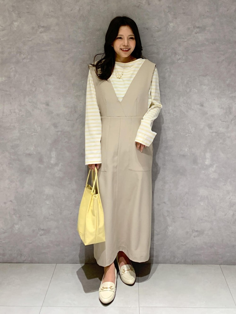カジュアル見えするボーダーカットソーも ベビーカラーな配色ならフェミニンな印象に! タイトワンピと合わせれば大人な 春のお散歩コーデになりました♡