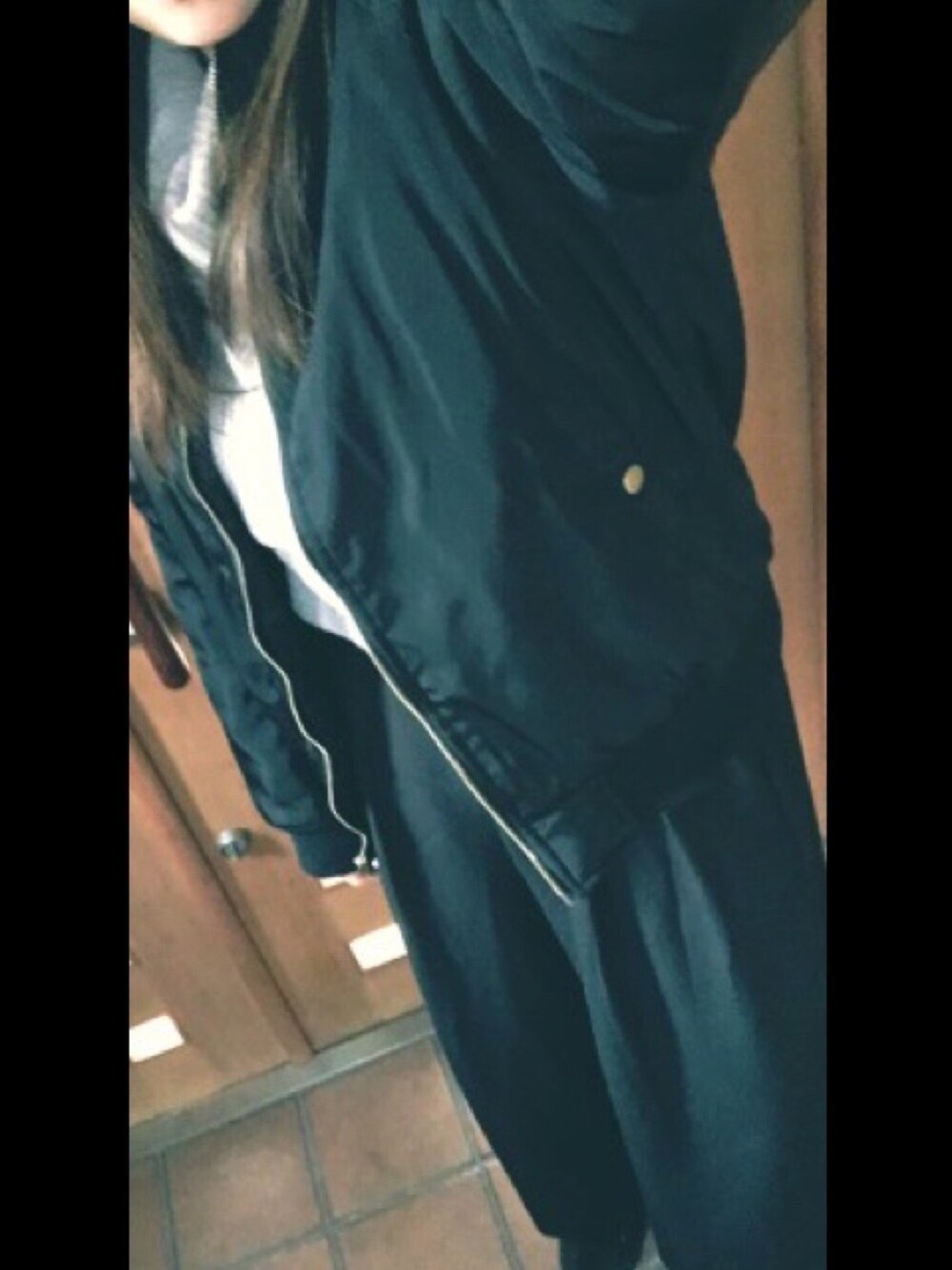 ブラック系のジャケット/アウターを着用したレディースの冬コーディネートの1枚目の写真