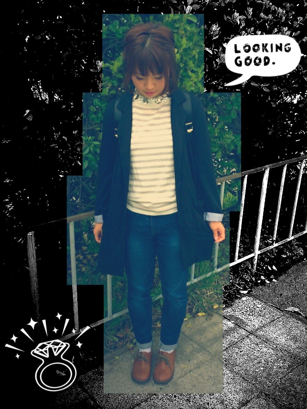 暖かくなってきたので、薄手のコートにしました❁ 裾の折り返しがストライプで可愛いです(^-^) デニムも合わせやすいー♡(^-^) 大阪行ってきます!笑