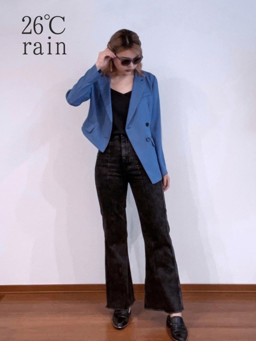 ご覧頂きありがとうございます😂 少しでも洋服選びの参考になってれば嬉しいです。 ▶Instagram:@fuku_kion 違う角度からの写真載せてます! _________code____________ 天気は雨☔️ 最高気温は26℃くらいで 湿気があってちょっと蒸しっと 紫外線は弱かったです! そんなこの日のコーデは 【ジャケットコーデ🕶】 ⚑ブラック+カラーもの 今回のメインはジャケット!! アシンメトリーになってて 着るだけでオシャレ。。 ジャケット主役にしたかったので 他はブラックで統一◎
