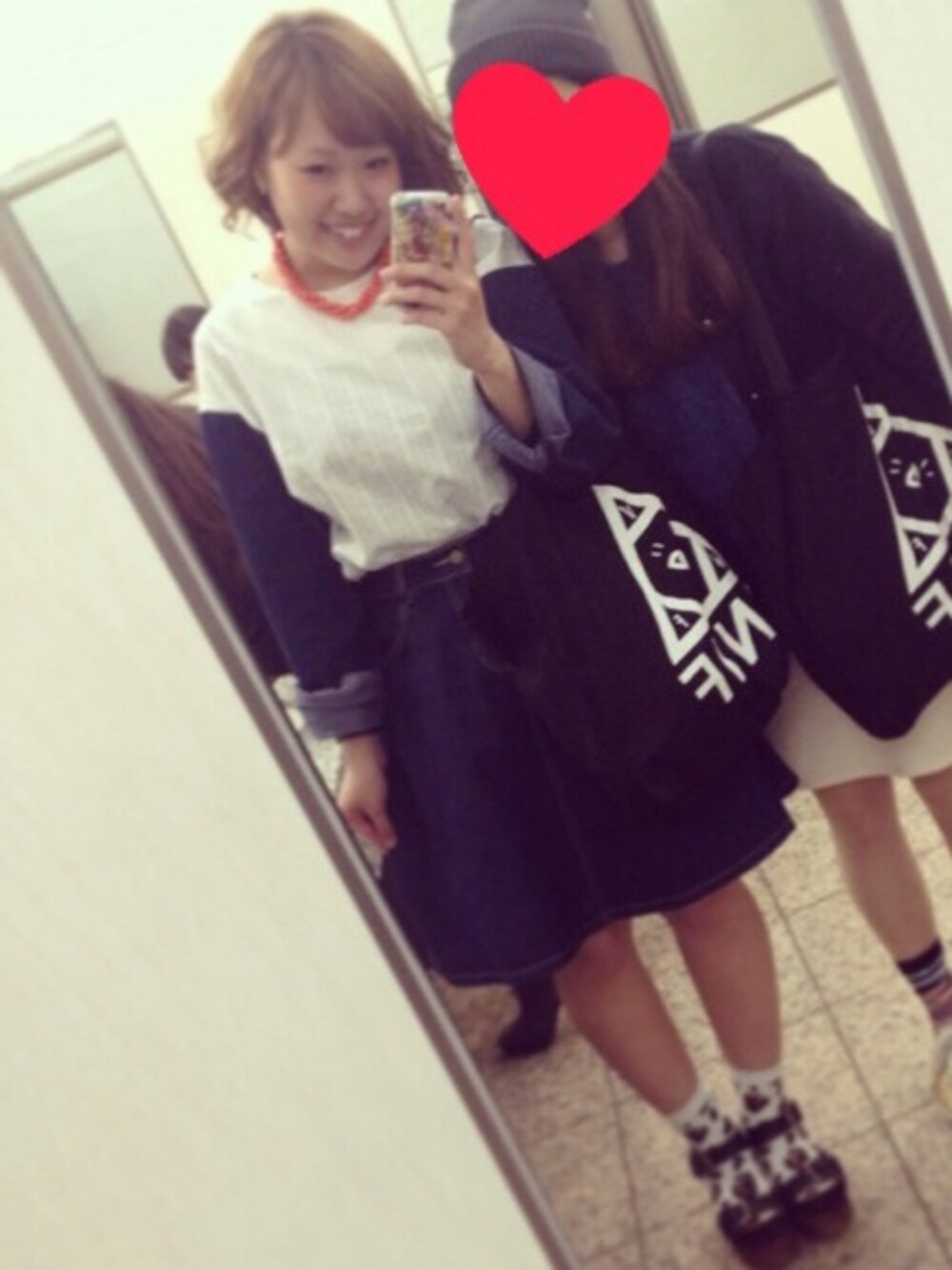 デニム使いのトップスと デニムスカートでセットアップ風♡ ネックレスでポイント♡☝︎