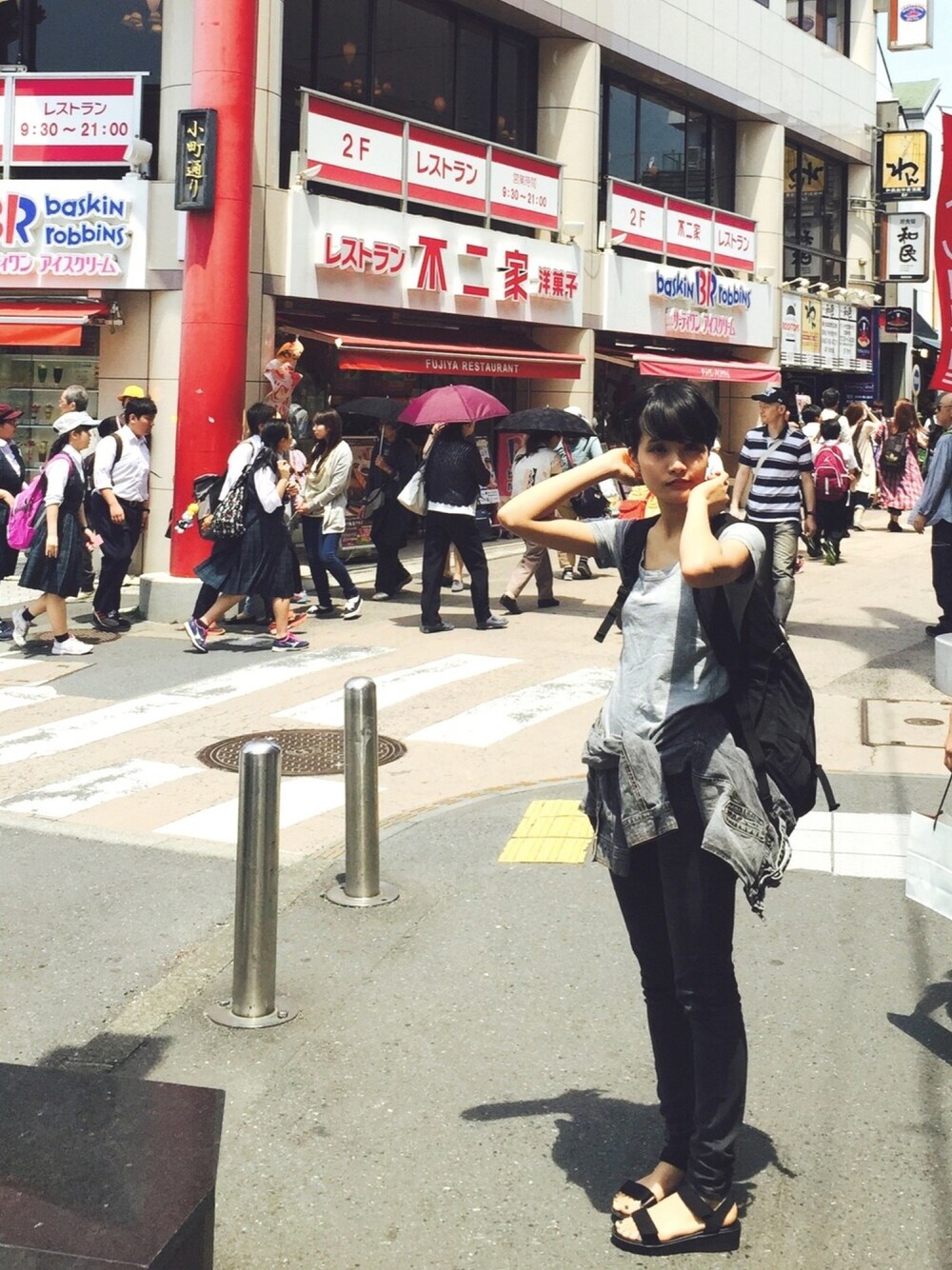 鎌倉。 トップスもボトムもえらい安売りの時に買った記憶がある。鞄は家のやつを拝借しているので、全身で一万円もしない安上がりさ。 気に入っています。