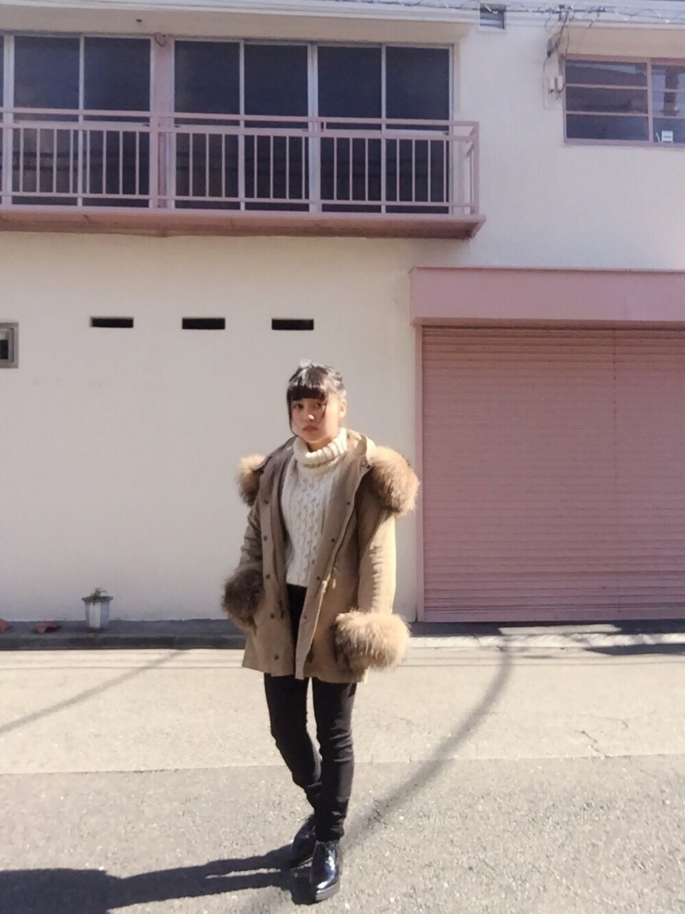 昨日の写真〜〜 昨日も一昨日もすっごい寒いから冬コーデだよ〜😭 もう春の気分でいたのにな、、、 今年初モッズコートかも!!
