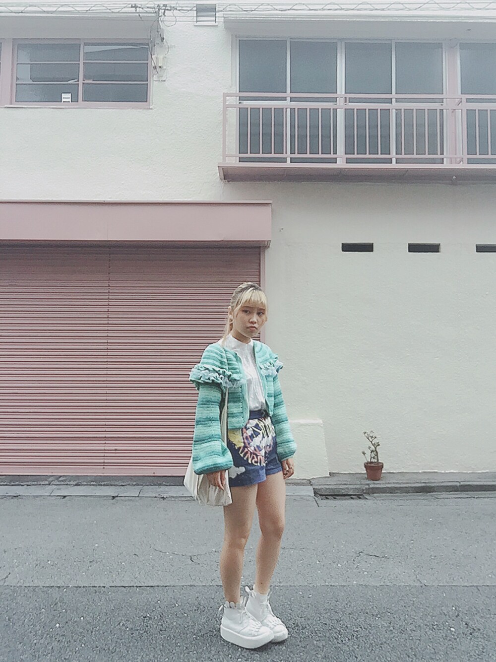 なかなかグリーン系は着ないけどママが作ってくれたカーディガンはお気に入り🙄🔱