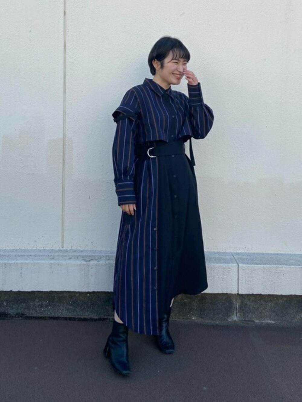 Koakiのワンピース「レイヤードコンビシャツワンピース」を使ったコーディネート