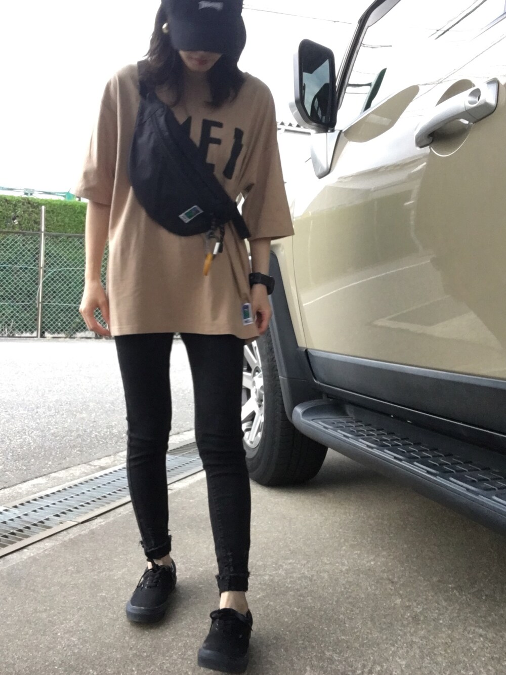 ベージュ×黒 の組み合わせ好き(・∀・) 今日は、動きやすさ重視‼︎‼︎ ベルトせんとパンツ下がってくるから面倒(;´д`) やっぱりこうゆう格好が1番しっくり来るなぁ😌