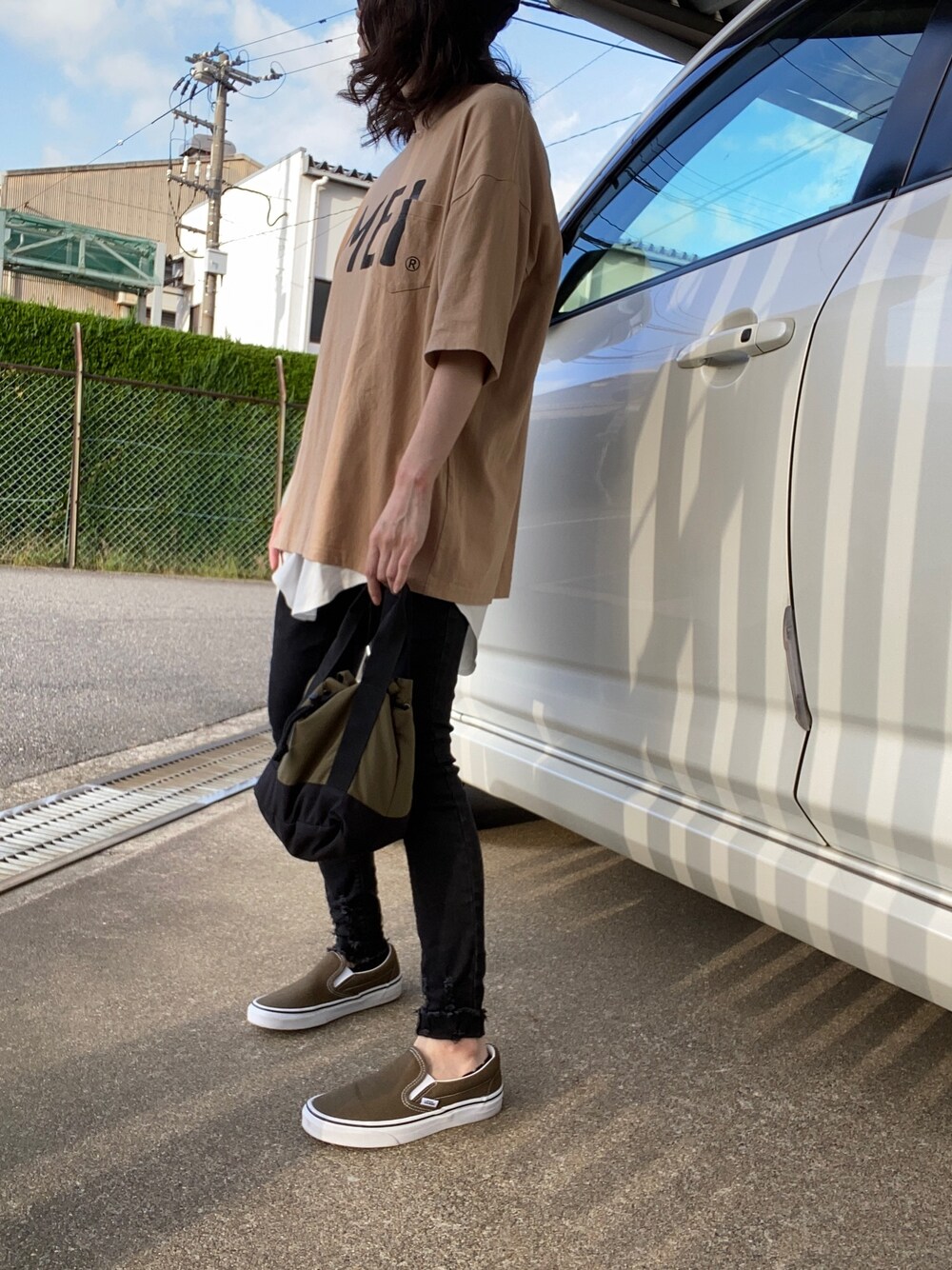 久々。。。 季節の変わり目で体調やられるので、油断せずに気をつけなきゃ💦 1年ぶりに着たMEI T👕 今日は暑かったから半袖で十分でした😃 ベージュ、黒、カーキの組み合わせ♡ 見えないけどキャップ、パンツ、スニーカーが1番しっくりくる☆