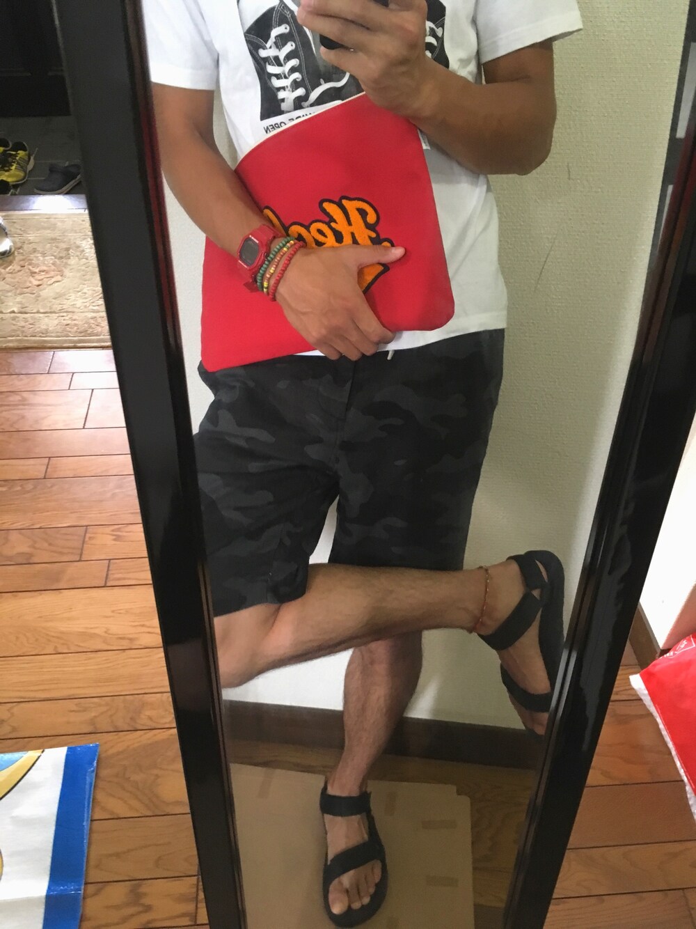 恐ろしく久しぶりの投稿😝 おNewのサンダル✨ Tebaはシンプルでいいね(*ˊᵕˋ*) 白黒コーデになっちゃったから 小物に赤を散りばめるスタイル🤗 暑いのは嫌いやけどサンダル履けるし 身軽なコーデやから好き´ ³`°) ♬︎*.:*