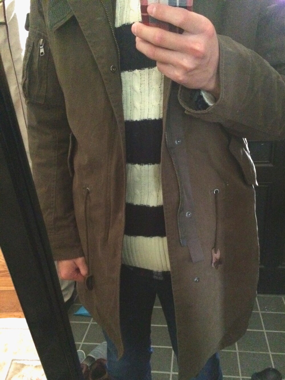 Adonis greenのモッズコート 多少値ははったが・・・ 渋めの色合い ダボつかず着れスキニーとの相性抜群!