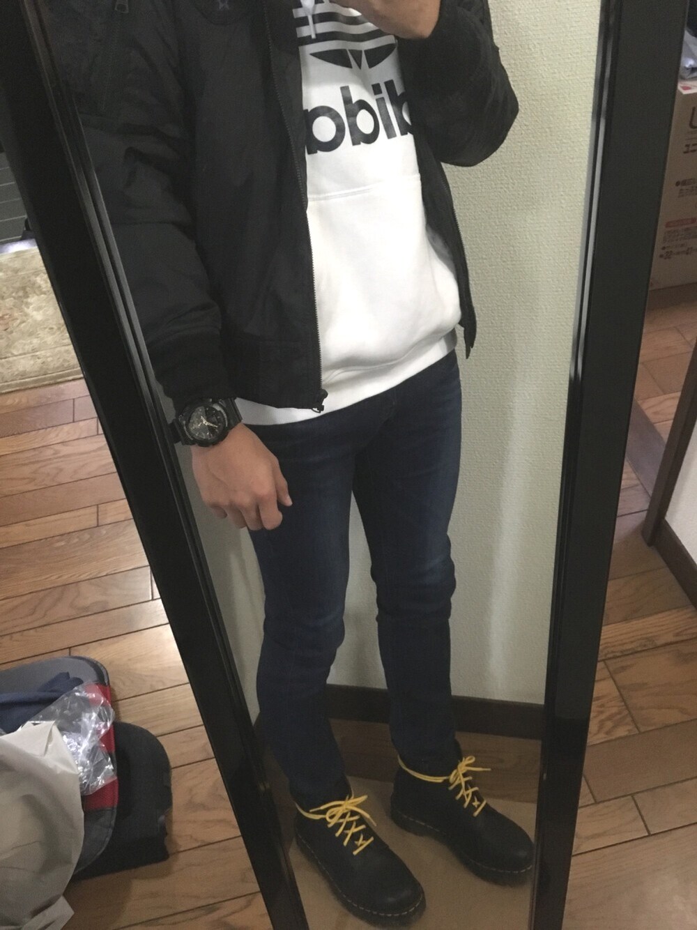 久々の投稿😳 このアウターはお気に入り(*´`) シンプルやけどワッペン付いててそれがまたいい😊 おNEWのG-SHOCK 文字盤が迷彩柄で好き(*ˊૢᵕˋૢ*) 久々マーチン履いたけど途中で疲れてNikeに履き替えちゃった😳 いつもどうりシンプルなコーデですね( ¨̮ )