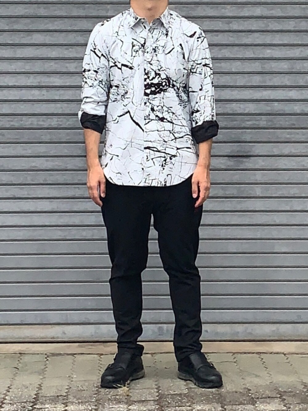 1週間モノトーンコーデ投稿 4日目 顔料プリントシャツのコーデ