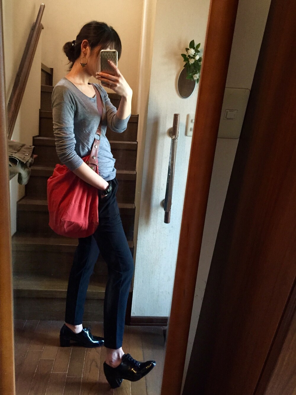 ポカポカですね〜♪( ´▽`) 今日もシンプルに。 クッタクッタの布バックでカジュアルダウンしています★
