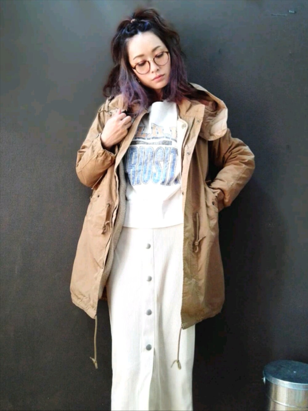 IMOKOのモッズコート「高密度コットンナイロン フード付き フィッシュテールコート / 裏ボアライナー脱着 モッズコート」を使ったコーディネート