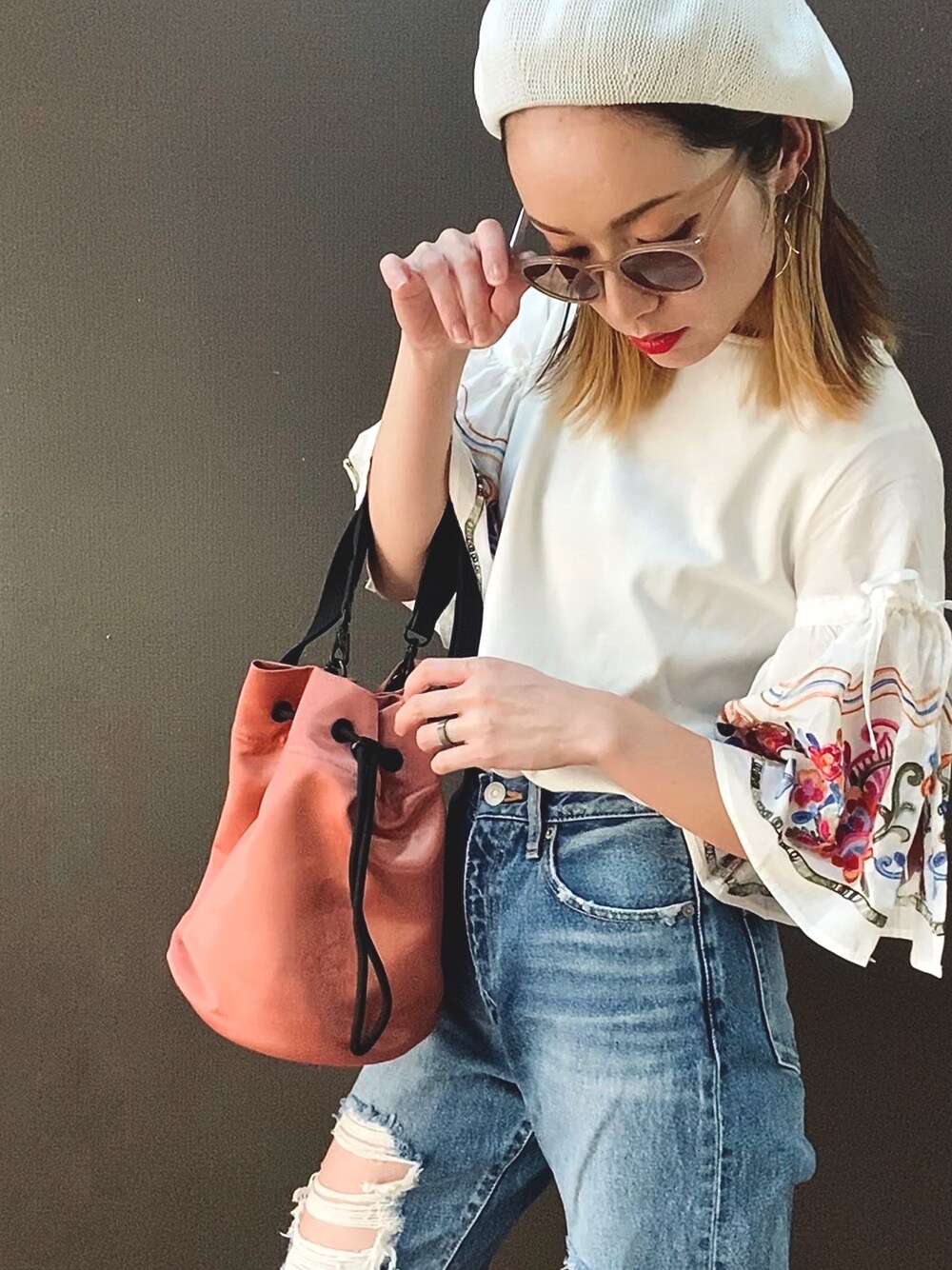 IMOKOのショルダーバッグ「ラビ(サテンラスト)」を使ったコーディネート