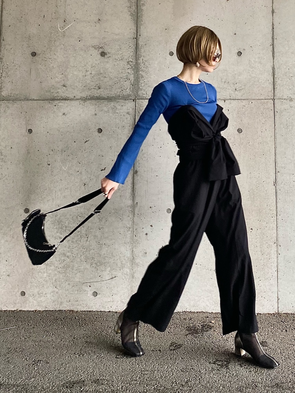 ୨୧┈┈┈┈┈┈┈┈┈┈┈┈୨୧ インスタグラムも遊びに来てね🎶 Instagram▶︎ oimo_30_omio ୨୧┈┈┈┈┈┈┈┈┈┈┈┈୨୧ 上下 HappyJohnコーデ! フレアスリットニットは綺麗なブルーをチョイス💙ブラックと合わせるとすごくブルーが映える✨ 程よいフィット感ですごく綺麗なシルエット、手が長く見える🎶 ▫️ フレアスリットニット ▫️ リラックスジャンプスーツ ▶︎HappyJohn ✔本日1000円クーポン出てます! ジャンプスーツの袖を胸元で結んでビスチェオールインワン風にしてます。安全ピンで止めてるからちょっと引っ張られてる🤣もうちょいいい留め方考えよ✨ ▫️ボールマスクチェーンネックレス ▶︎handmade~SR~ 約3mmの小ぶりのボールチェーン。マスクチェーンはもちろん、ネックレスとしても使えます!¥1200 Minneにて販売中! ▫️スクエアシルバーリング ▶︎ handmade~SR~ シンプルで使いやすいシルバーリング。合金、フリーサイズ※少し固めです。¥1000 Minneにて販売中! ▫️ ♡wood×marble♡ ▶︎R&A~handmade~ ウッドカボション×しずく型マーブル模様のパーツの大ぶりピアス。ゴールドプレートがアクセントになっています。見た目よりも軽くて耳への負担はありません。Minneにて販売中! ▫️ 【LAC VERT/ラック・ヴェール】ミニポーチ付きショルダーバッグ ▶︎ LAC VERT ▫️ スクエアトゥシアーチュールパイピングショートブーツ ▶︎Neuna ▫️ 【フルウィッグ・ショート】エンジェリックレースフロントエッジボブ ▶︎LINEASTORIA PR
