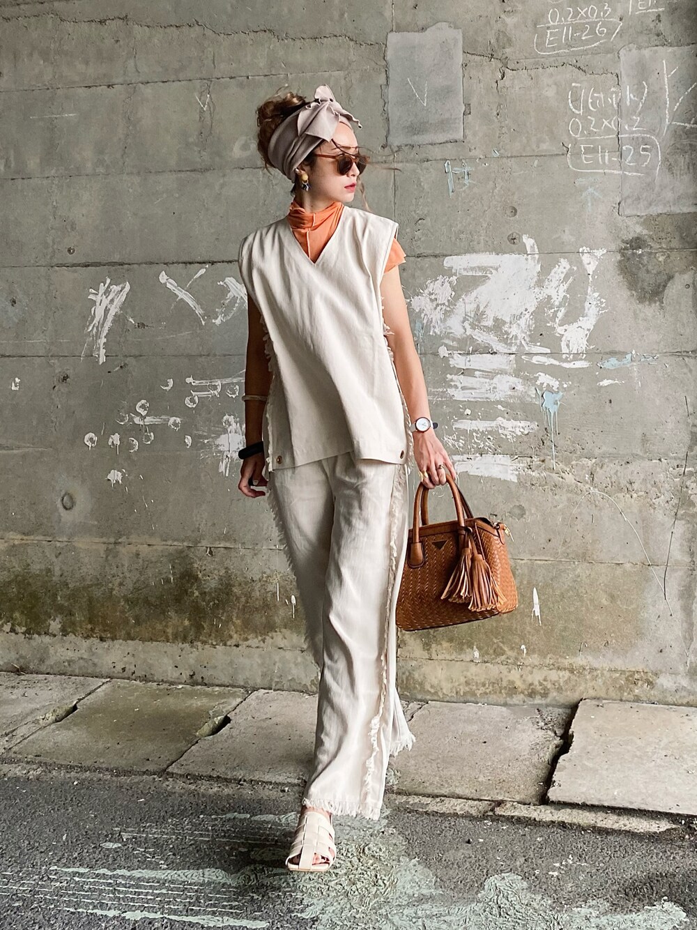 ୨୧┈┈┈┈┈┈┈┈┈┈┈┈୨୧ インスタグラムも遊びに来てね🎶 Instagram▶︎ oimo_30_omio ୨୧┈┈┈┈┈┈┈┈┈┈┈┈୨୧ solaceのこのセットアップ、お気に入りで2色持ち♥両サイトのフリンジでデザイン性高めで、シンプルな着こなしでもオシャレにきまります!生地はしっかりしてて、オールシーズン使えます✨✨ インナーにBIRTHDAYROOMのフレンチ袖シアータートルを合わせました。チラ見えのオレンジが効いてるでしょ🍊 ▫️ サイドフリンジコットンワイドパンツ ▫️ コットンVネックサイドフリンジベスト/solace ▶︎solace ▫️ グルカサンダル/フラットサンダルシューズ ▶︎Neuna ▫️ フレンチ袖シアータートル ▶︎BIRTHDAYROOM ▫️ 2way総レザー編込みーショルダーバッグ/ハンドバッグ ▶︎florist ▫️ 無地 リボン ヘア ターバン ボリューム ヘアバンド ▶︎voov ▫️ 花びらイロとりどり♢2way earring or pierce ▶︎icoro ▫️ マーブルバングル ▶︎Lune ▫️ AMELIE ▶︎KERBHOLZ PR