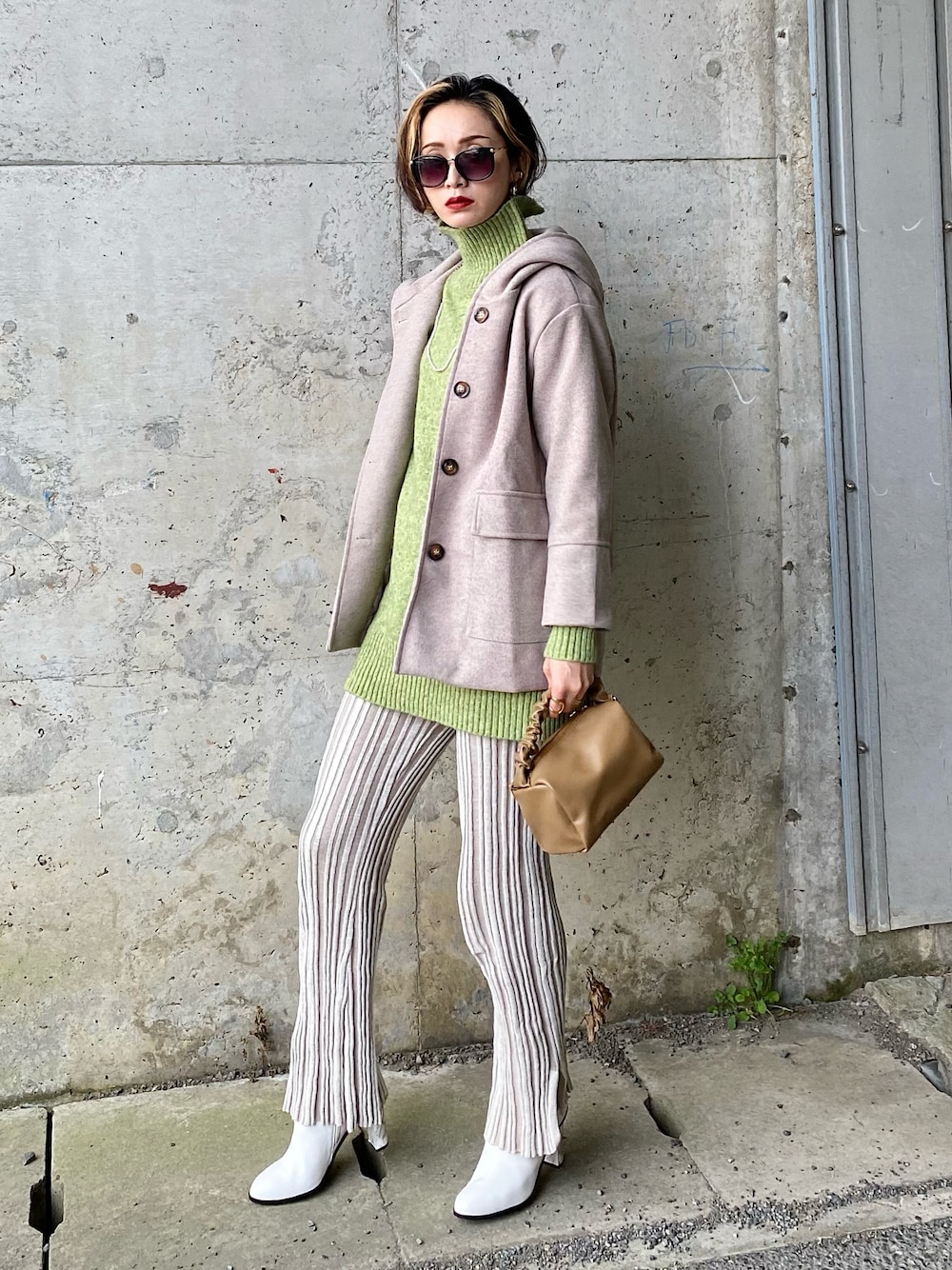 ୨୧┈┈┈┈┈┈┈┈┈┈┈┈୨୧ インスタグラムも遊びに来てね🎶 メイン: oimo_30_omio y/m by IMOKO:ym_by_imoko ୨୧┈┈┈┈┈┈┈┈┈┈┈┈୨୧ くすみグリーンとベージュのナチュラルカラーのコーデ。 サッと羽織れるハーフコート、ロングコートも好きだけど、普段はこれくらいの着丈のアウターが楽ちんでよく着てます。 SUGAR BISKETのフード付きハーフコート、幼く見えがちなフードも、綺麗なシルエットで大人コーデにもぴったり!大きめポケットが全体のバランスを良くてくれるし、利便性も◎こちらはMサイズで、丈感気にしてたけど、中のニットとすごく相性良かった✨ deux amourのショルダーバッグは販売前から使わせてもらってるけど、このバッグ持ってるとすごく好評✨フリルハンドルがかわいいでしょ♥ショルダーストラップ付きでショルダーバッグとしても使えます!ベージュ、ブラック、今期トレンドのグリーンの3色展開です。 グリーンのニットはVACANCYのタートルネックオーバーカラーニット。ゆったりサイズで腰周りも覆ってくれる着丈なので、とんなボトムとも相性◎ネックと裾のスリットでバックスタイルも抜け目ない✨ 大理石柄のヒールで、ボトムの裾からチラ見えでも存在感のあるLISA☆VICKYの牛革ラウンド ショートブーツ。高めのヒールで脚長効果あり、太めのヒールで安定感もばっちり!真っ白ブーツはハードル高そう!なイメージだけど、足元から明るく華やかにしてくれるので、秋冬コーデに取り入れて欲しいカラーです✨ yu-ka のボリュームフープピアスはシンプルながら大ぶりでしっかり存在感のある、使いやすいデザインのピアス。シルバーとゴールドの2色展開で、私はシルバーを着用しています。 ✔現在Yu-kaさんのInstagramではプレゼント企画開催中!要チェックです✨ PR ▫️ フード付きハーフコート ▶︎SUGAR BISKET ▫️ タートルネックオーバーカラーニット ▶︎VACANCY ▫️ ストライプウエストゴムスリットニットフレアパンツ ▶︎Neuna ▫️ yu-ka : ボリュームフープピアス ▶︎yu-ka ▫️ 【CENE】セネ/ パーティクルダブルライン リング ▶︎CENE ▫️ ボールチェーン&パールマルチネックレス ▶︎BIRTHDAY ROOM ▫️ design ring B116 ▶︎iLOFUL ▫️ 【牛革】ラウンド ショートブーツ ホワイト ▶︎LISA☆VICKY ▫️ フリルハンドルミニボストンバッグ ▶︎ deux amour
