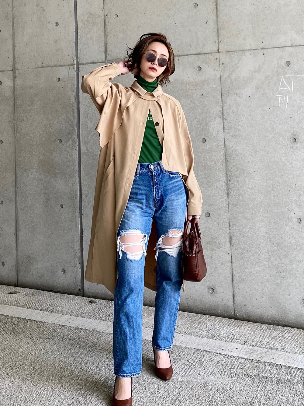 ୨୧┈┈┈┈┈┈┈┈┈┈┈┈୨୧ インスタグラムも遊びに来てね🎶 メイン: oimo_30_omio y/m by IMOKO:ym_by_imoko ୨୧┈┈┈┈┈┈┈┈┈┈┈┈୨୧ これは斬新! VACANCYのマルチウェイレイヤードトレンチコートのベージュを着用しています。 ショート丈ジャケットとロングジレがドッキングしたコート!セパレートなのでそれぞれ単体でも使えて3wayの着こなしが楽しめる!スワイプして見てね✨ 薄手のコートなので春~、ジレは夏でも使えるよ!シャツ感覚で軽い着心地も◎ グリーンのタートルネックトップスはKIR.で販売中!意外とあんまりないレタリングロゴ入りで、アウターからちらっと覗かせてもオシャレ✨ 【KIR.】 ストアURL▶︎ https://bit.ly/brandi_jp_KIR プロフィールの🔗→brand→KIR.でショップをご覧下さい✨ PR ▫️ マルチウェイレイヤードトレンチコート ▶︎VACANCY ▫️ カインダーレタリングタートルネックT ▶︎KIR. ▫️ HW RIPPED STRAIGHT ▶︎MOUSSY ▫️ 2wayクロコ柄スクエアレザーハンドバッグ ▶︎Neuna ▫️ silver925 スクエアモチーフ リング 2タイプ ▫️ silver925 ホワイトシェル ワイドリング ▶︎ReDEM ▫️ FLAMELESS EYEWEAR/フレームレスアイウェア ▶︎AZUL by MOUSSY ▫️ TOGE flower ▶︎M2 handmade&select ▫️ パール&アクリル3点セットリング ▶︎BIRTHDAY ROOM