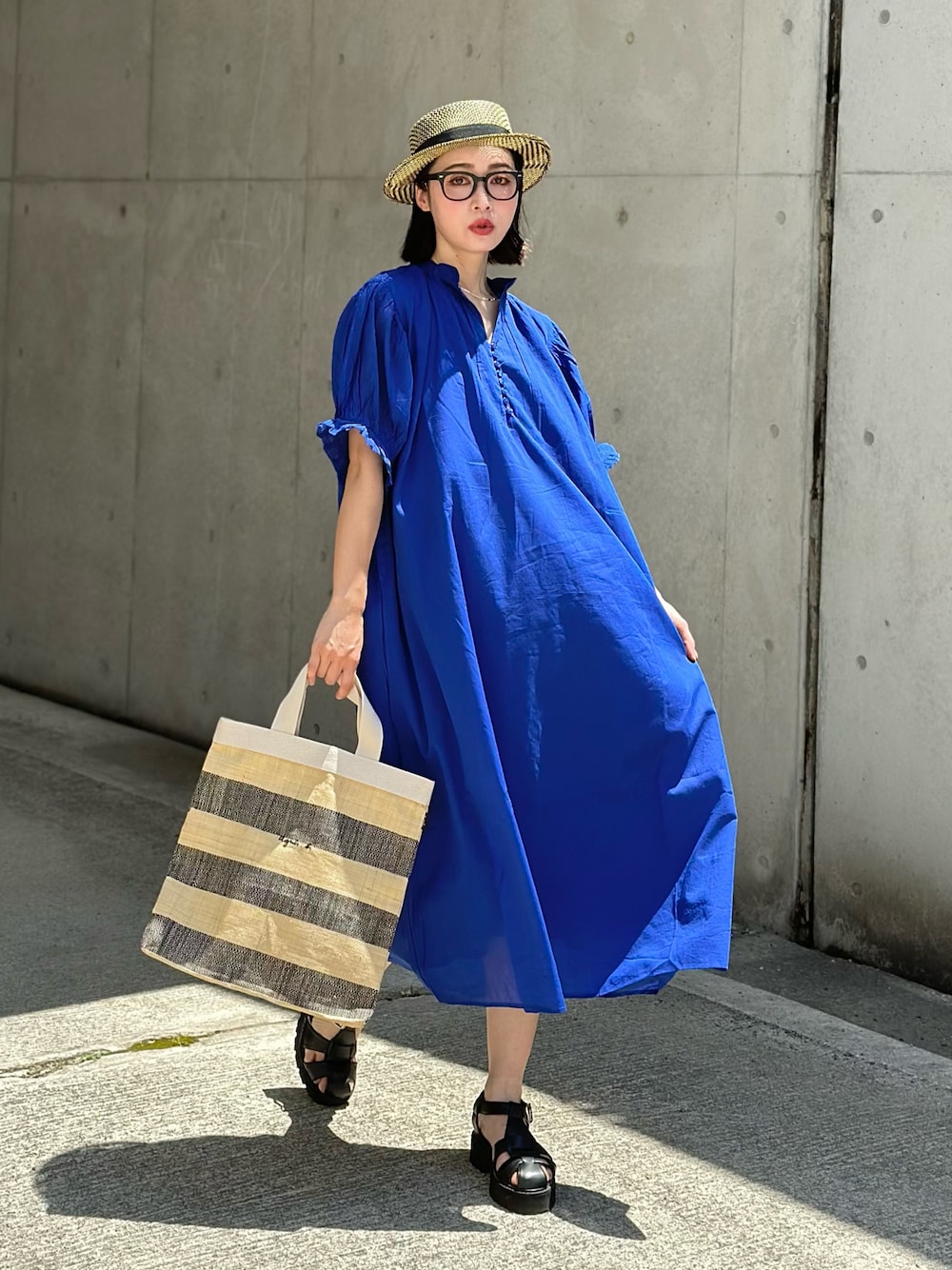 綺麗なロイヤルブルーのワンピース。 3パターンで着回してみたのでスワイプ&動画をみてね! bohmalのインド綿スキッパーロングワンピースは、去年も大人気だったアイテムで、今年は新色で登場!ロング丈なのに、柔らかい生地で重たさ0。少し開いた襟でスッキリ感、ボタンがアクセントになっています。 ︎︎︎︎☑︎ZOZOWEEK開催中です! 着心地かなりいいので、旅行コーデにオススメ! 【PR】 ▫️ インド綿スキッパーロングワンピース ▶︎bohmal ▫️ UAX03-01 ラフィアトートバッグ ▶︎agnes b. ▫️ MIX PAPER BOATER HAT/ミックスペーパーカンカン帽 ハット ▶︎Ruben ▫️ <CITEN(シテン)>トラックソール グルカサンダル ▶︎CITEN