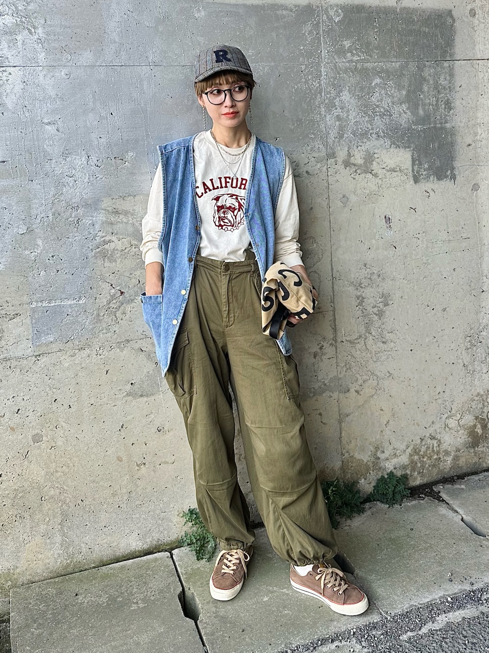 秋色コーデにちょっと地味になりがちなので、ライトブルーのデニムベストを合わせてみました。 デニムベストを脱いでも可愛く見せたいので、サスペンダーのカーゴパンツにしました。 ベストの合間から見えるブルドッグが可愛いでしょ? ANGIEのカレッジロゴTは、秋冬新作も追加されてデザイン豊富!何枚あっても困らないから、柄違いでGETしても◎大きめサイズもあるので、メンズもOK! ▫️ 【2023年秋冬新色追加】GILDANカレッジロゴオーバーサイズロンT/ユニセックス▶︎ANGIE ▫️ サスペンダー付きカーゴパンツ ▶︎CORNERS ▫️ 【2種展開】【A4収納可】アルファベット肩掛けor手提げキャンバストートバッグ ▶︎florist ▫️ ボールチェーンロングピアス ▶︎handmade〜SR〜 ▫️ スクエアチェーン3連コインネックレス ▶︎COLOR TOKYO ACCESSORY ▫️ 【U.S. POLO ASSN.】ユーエスポロアッスン 腕時計 CLASSICO クラシコ ▶︎ U.S. POLO ASSN. ▫️ [LOVB LOVB]カラーフィクシングステインティント ▶︎ LOVB LOVB ▫️ サミュレ スキンフィットCICAクッション ライトベージュ ▫️ サミュレ スキンフィットUVプライマー ▶︎samule