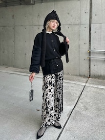 IMOKOのボストンバッグ「SMALL BAMBOO BOSTON スモークハートレオパード」を使ったコーディネート