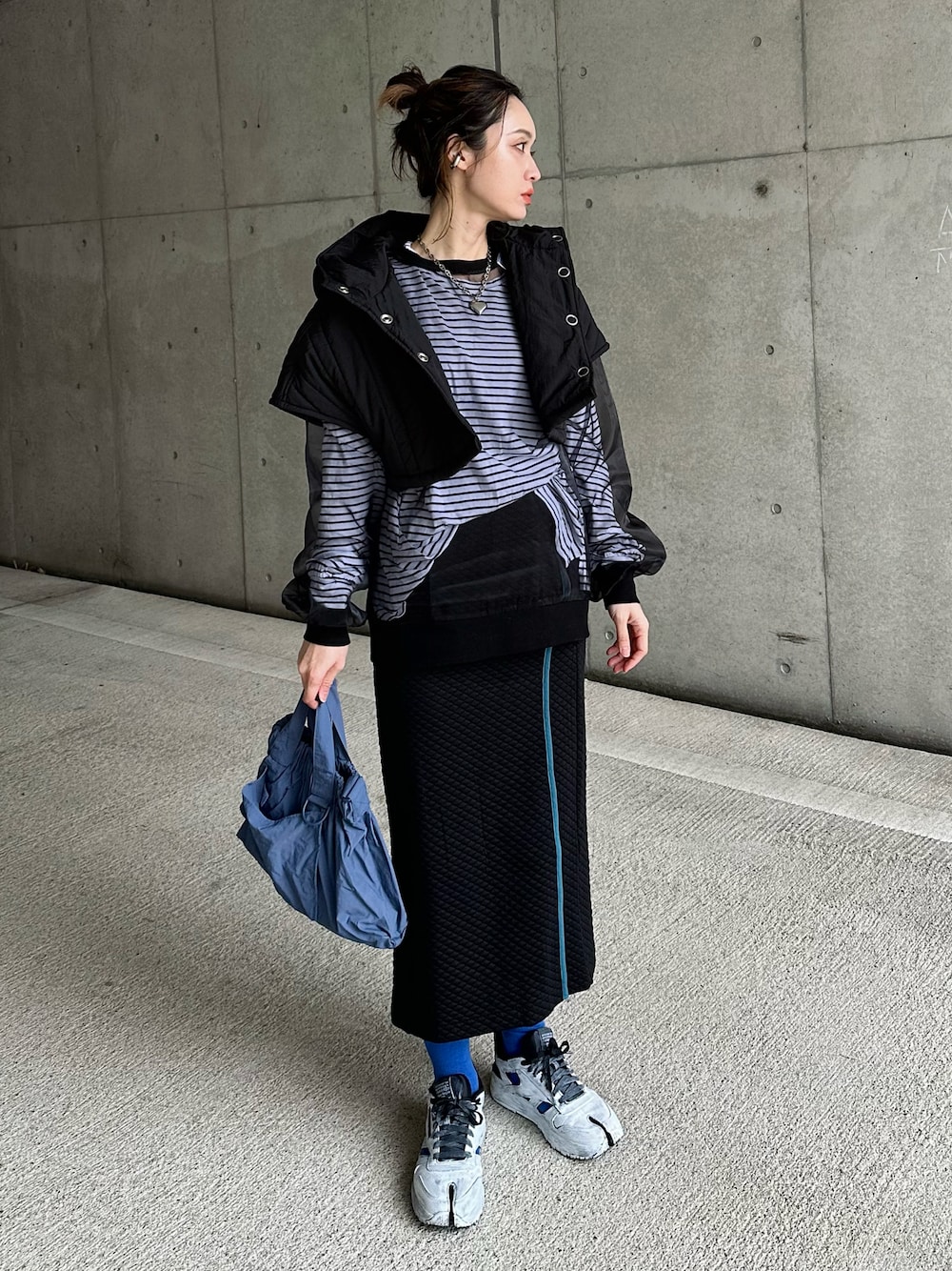 IMOKOのスカート「ラップ風キルティング配色パイピング Iラインスカート」を使ったコーディネート