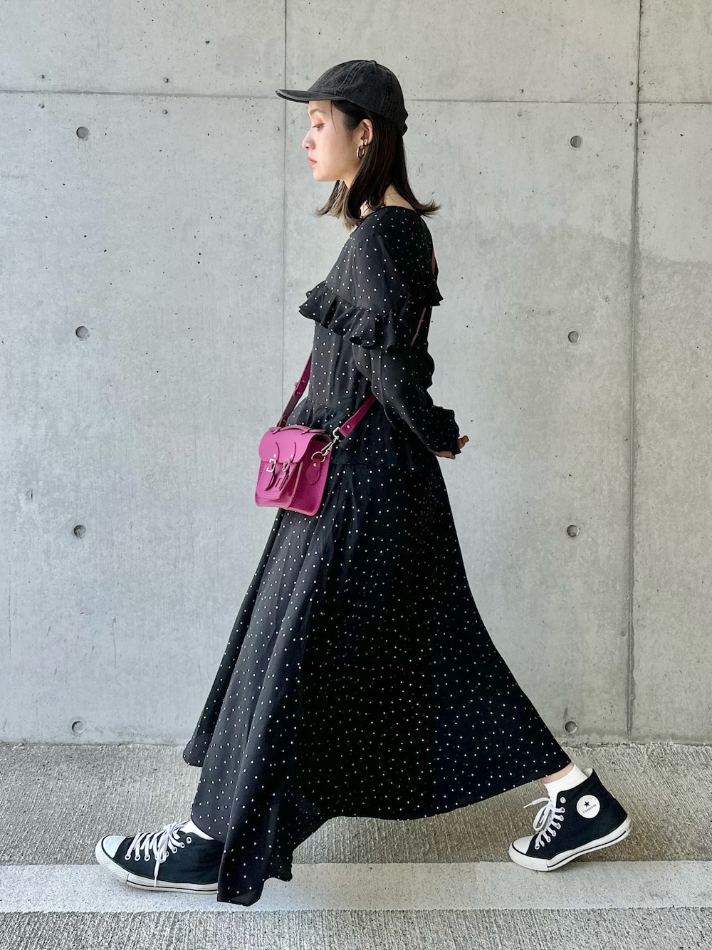 IMOKOのワンピース「ランダムドットフリルワンピ」を使ったコーディネート