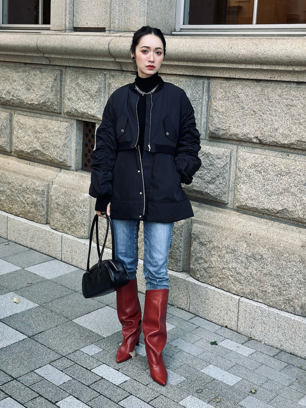 この日、神戸は風が強くてめっちゃ寒かった!今週からいよいよ本格的寒くなりそうなので、アウターコーデ始めました◎ ▫️ 2WAY中綿ブルゾン ▶︎LADYMADE このアウター、凄いんです!! 通常バージョンは腰がすっぽり隠れる着丈、 そしてウエストのファスナーを開くと… ショート丈ブルゾンに! さらに嬉しいのが、袖リブにサムホールがあって、手元まで温かい!冷たい風が入り込まないからヒヤッと感なし。 これ1着で2パターン楽しめる♡ おすすめアウターです! 【PR】LADYMADE ▫️ 2WAY中綿ブルゾン ▶︎LADYMADE ▫️ Silver cross necklace ▫️ Black mirror heart pierce ▶︎handmade〜SR〜 ▫️ プアッファーボストンバッグ ▶︎Naege ▫️ ポインテッドトゥ ワイドシャフト ロングブーツ (8.0cmヒール) ▶︎MAMIAN