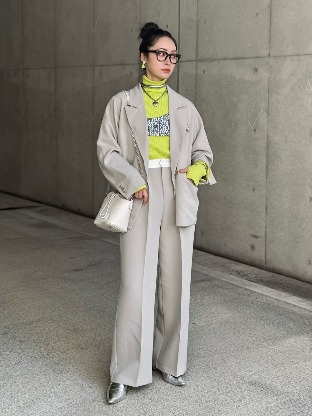 IMOKOのテーラードジャケット「ダブルボタンオーバーサイズジャケット【セットアップ対応】」を使ったコーディネート