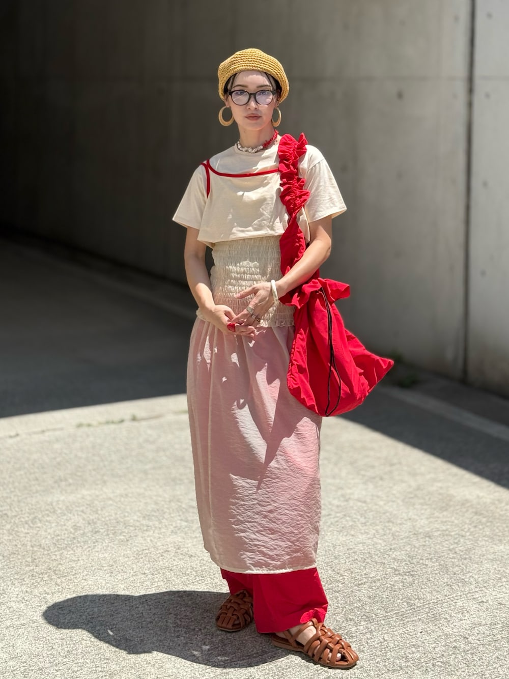 こないだ友達と買い物した時に、 ベージュとレッドって相性いいよね! って話してて、ちょうど前日にollで買ってたトップスがコレ! やっぱり相性いいよねー! やっぱ赤来たら気分上がるわー❤️𓂃 𓈒 ▫️ Piping multi way Tee ▫️ Shirring bare skirt oll ▫️ ギャザービッグ巾着ショルダーバッグ somlu. ▫️ Jill whim ▫️ 軽量コットンブレンドバルーンパンツ【ウエスト調整可能・ 夏用・フィット】(セットアップ対応) ▫️ 夏用 薄手編みベレー帽【透湿・デザイン性・女性用】 Tao ▫️ HighSole レトロ ファッション カジュアル ローマ式 フラット サンダル 女性用 ブラウン スクエアトゥ 編み込み ID sx25022824691257285 SHEIN ▫️ オリジナルPCレンズBIGウェリントン伊達メガネ Niko and…
