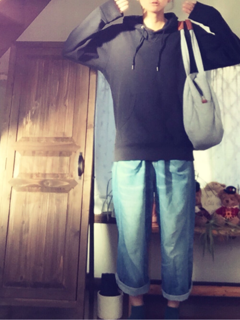 体調が悪くて 手抜きコーデに...。 上下大きめサイズなんで めっちゃ楽ちん~( ¨̮ ) きょうははやめにねよ~と。 夜更かしはあかんね。笑 おわり。 momonca✩