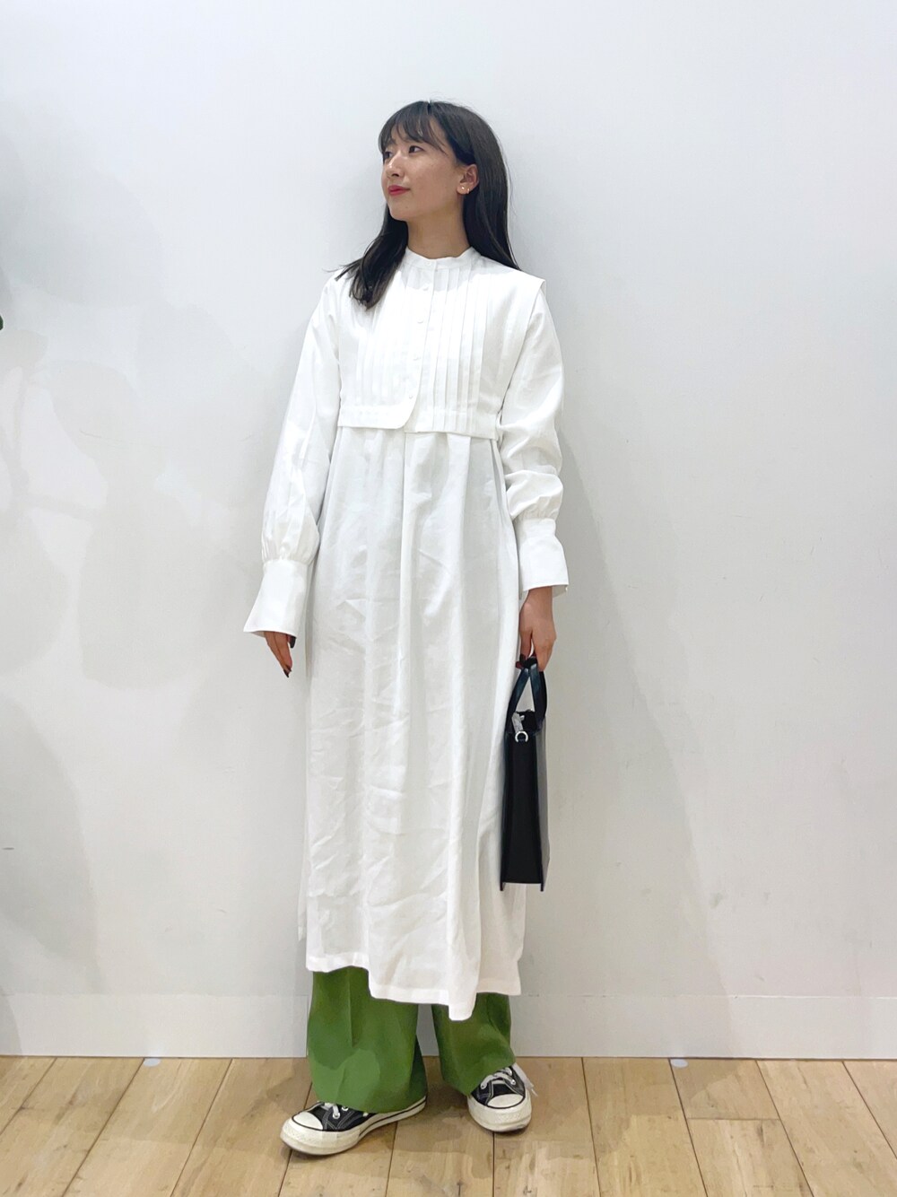 maiのワンピース「タックベストレイヤードワンピース」を使ったコーディネート