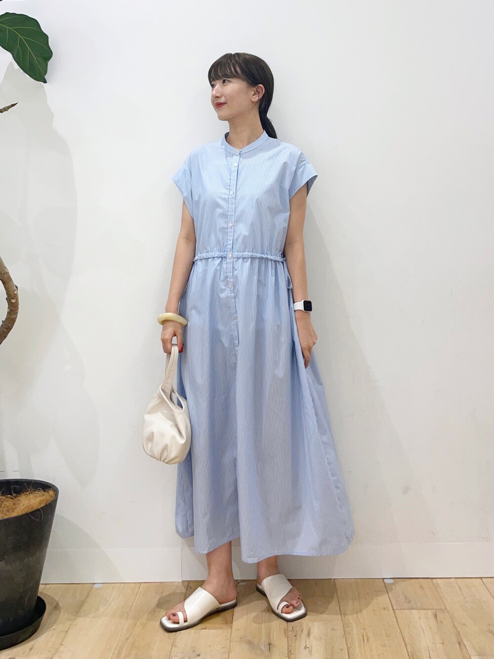 maiのシャツワンピース「【One-C/低身長向けサイズ展開あり】フレンチスリーブシャツワンピース」を使ったコーディネート