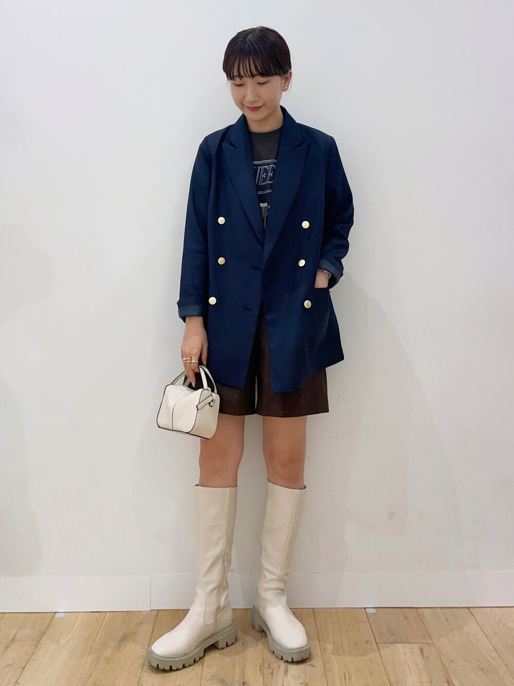 maiのその他アウター「メタルボタンダブルジャケット」を使ったコーディネート