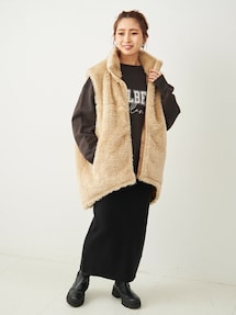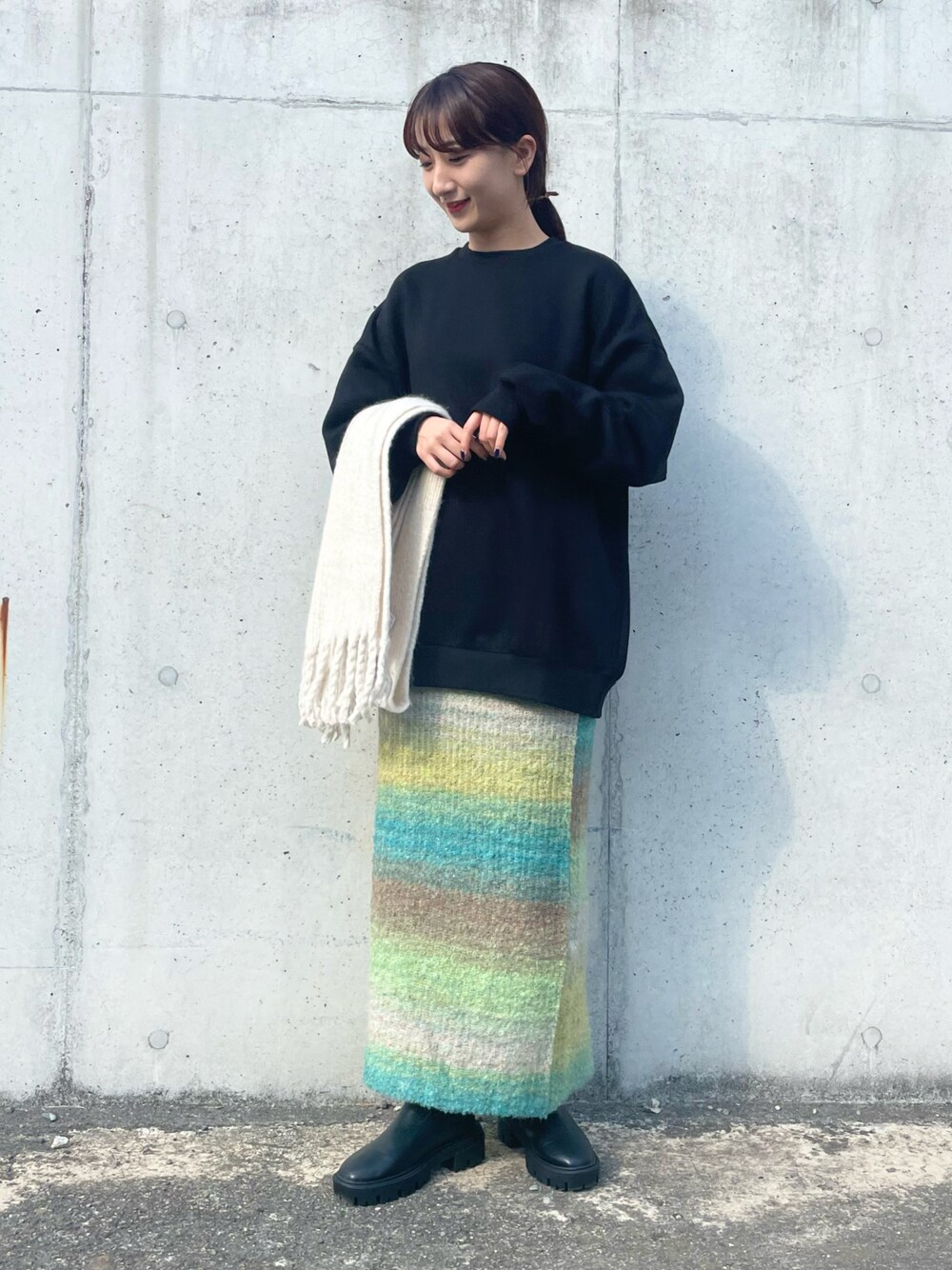 maiのストール/ショール「ビッグフリンジニットストール」を使ったコーディネート