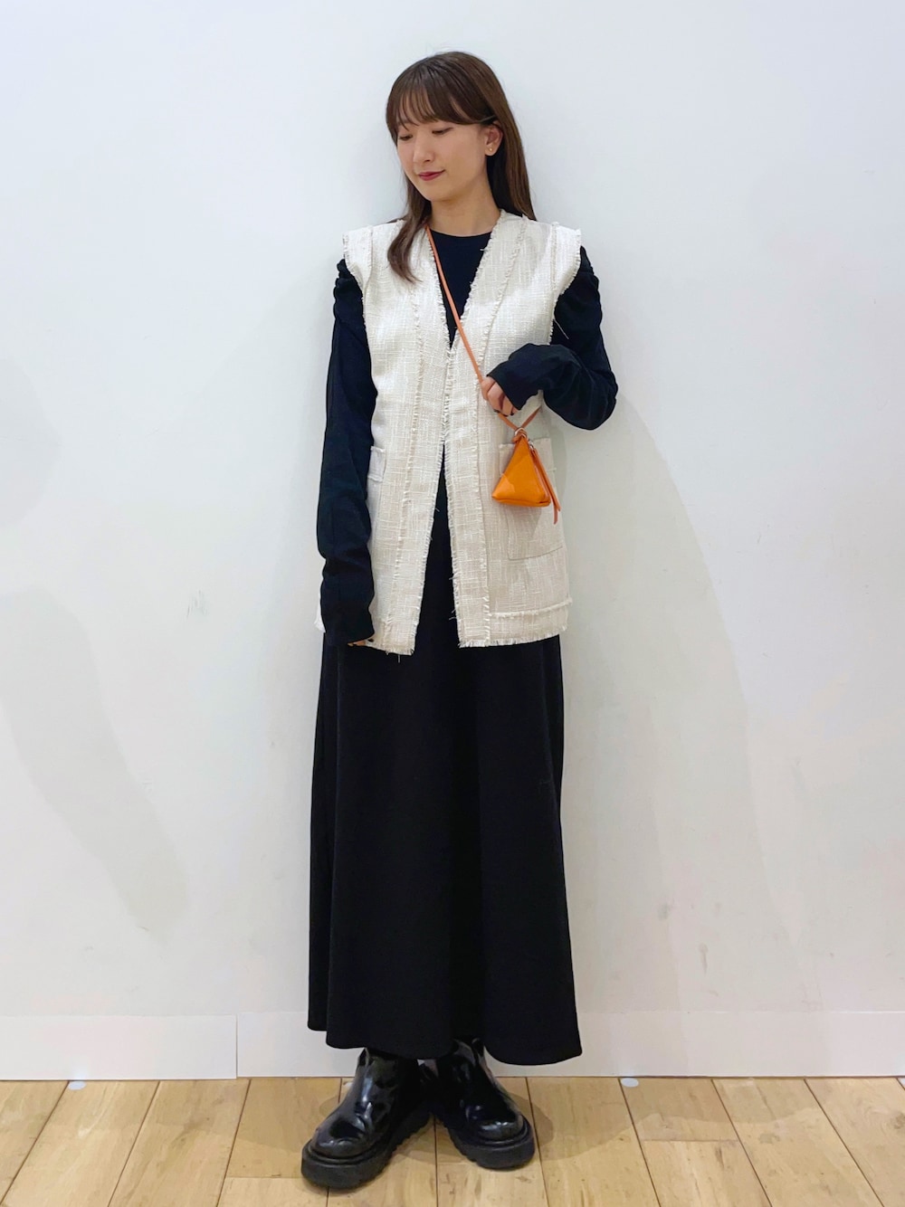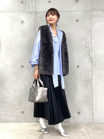 maiのワンピース「ボリュームスリーブアイラインカットワンピース」を使ったコーディネート